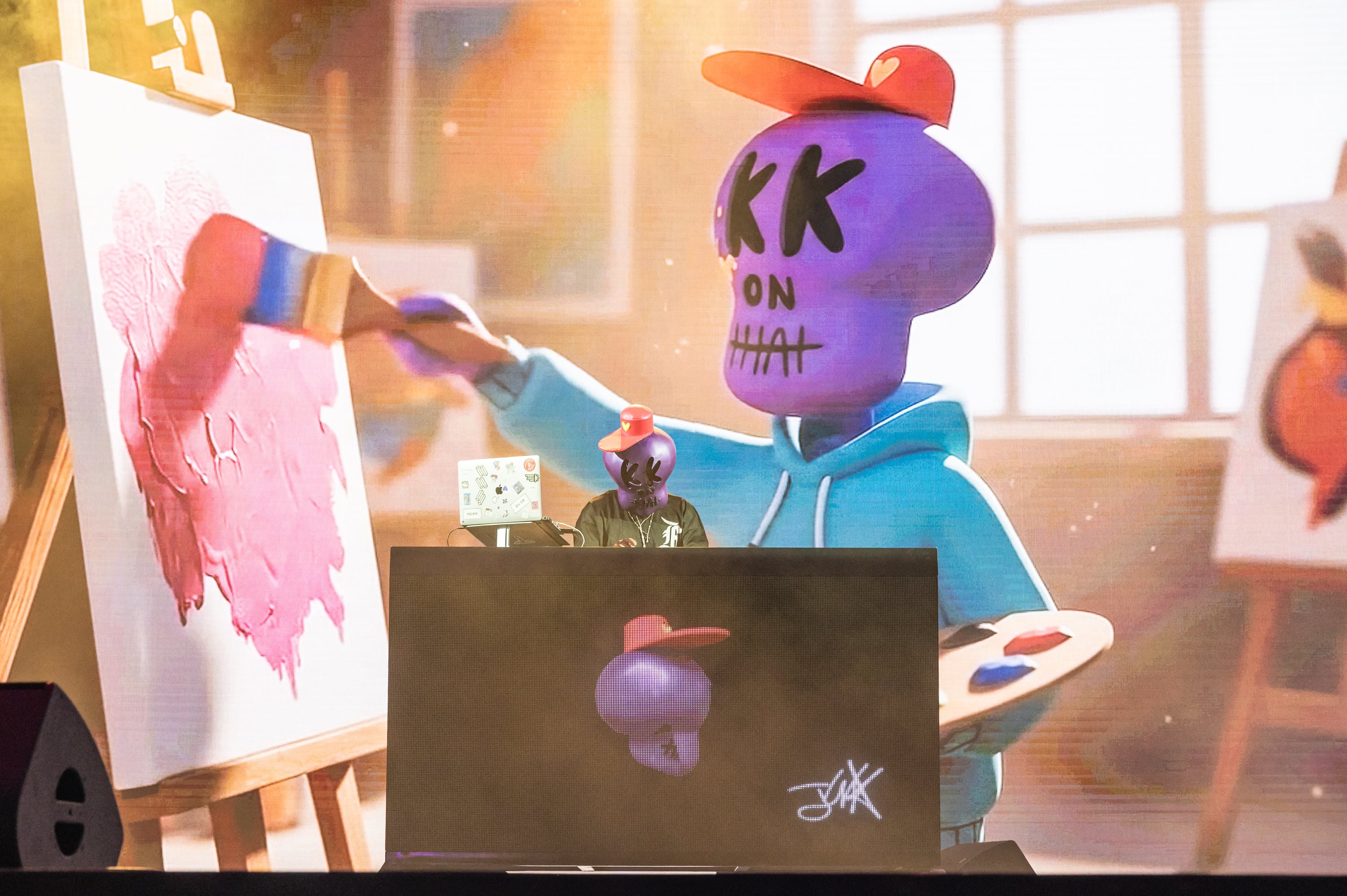 On the 16th, at 7 p.m. local time, K-pop music filled the air at the biggest theme park in Dubai, UAE, known as 'Global Village.' A DJ wearing a mask shaped like a skull performed on the main stage, while locals enjoyed dancing to K-pop tunes. Behind the DJ, three large screens displayed videos featuring 'KkonThat,' a character with a skull design, performing dance moves, creating graffiti on walls, and skateboarding. These videos were generated using artificial intelligence (AI) based on the KkonThat character. KkonThat serves as a prime example of OSMU (One Source Multi-Use), where AI transforms a character into various forms of content. The character has partnered with numerous companies across South Korea, Spain, and Poland, expanding its presence in areas such as DJing, music, visual arts, and performances. Yubora Yoo, CEO of Purbulus, the company that developed the KkonThat character, stated, "What once required five days of hand-drawn animation can now be done in 2–3 hours using AI," and added, "AI enables us to produce character-based content more quickly and at lower costs, allowing for faster market testing."