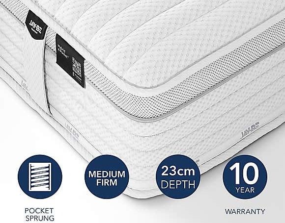 Enhance your sleep with the Jay-Be 2000 Hybrid E Pocket Eco Trucore Mattress, available at a discount of £35.90. This mattress includes ultra-fine micro e-Pocket™ springs that offer a fresh level of responsiveness, operating separately to softly react to the lightest movements during the night.