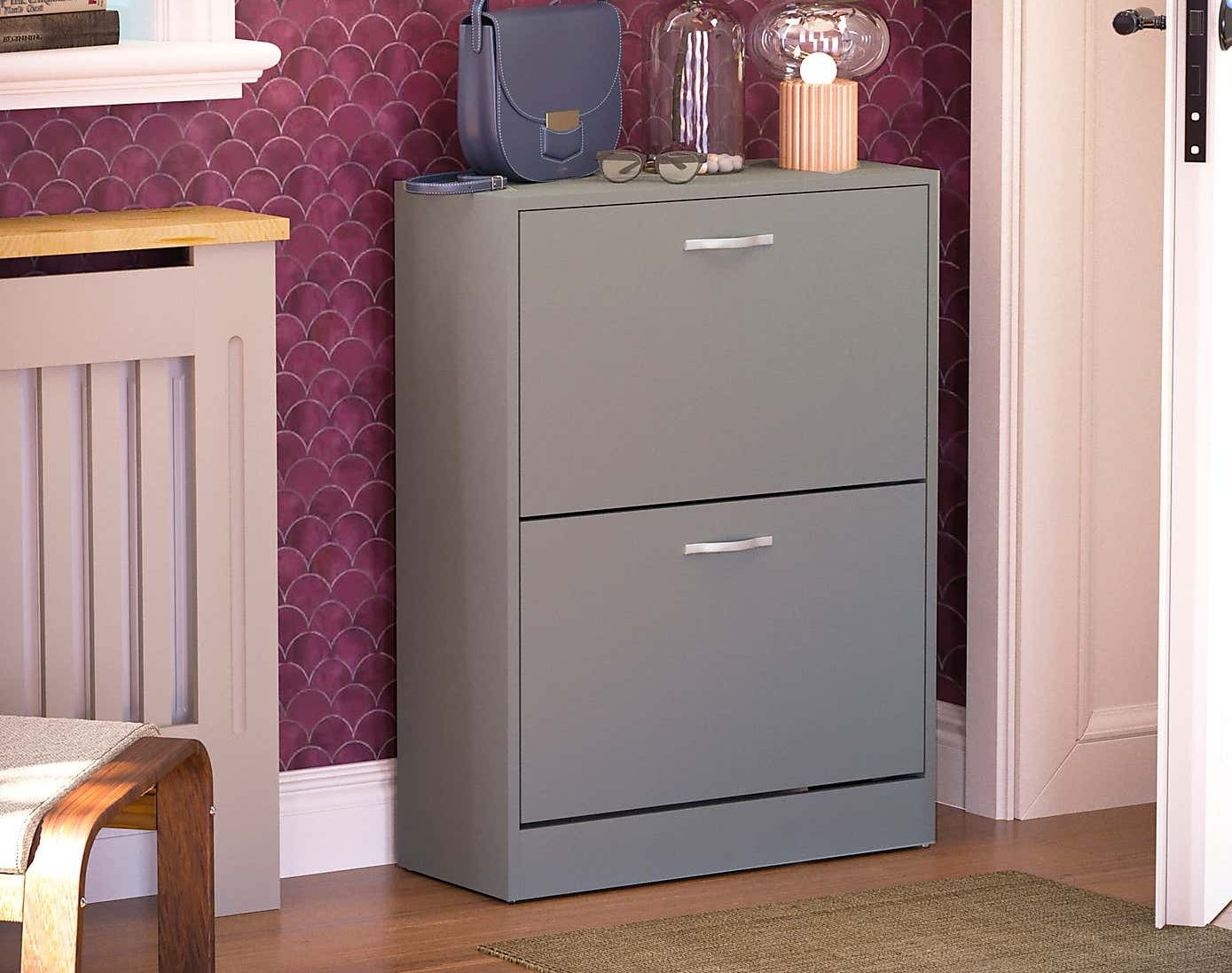 Maintain organized spaces with this Vida Designs 2 Tier Shoe Cabinet, featuring two large drawers designed to store multiple pairs of shoes, helping to keep your entryways tidy.
