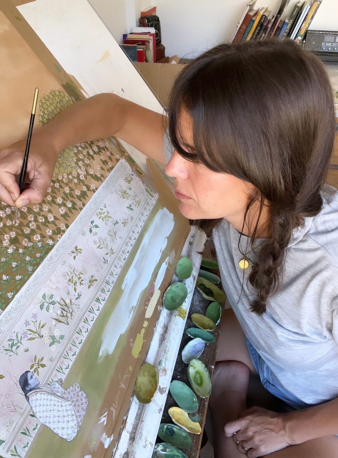 Now, she is focusing on more tranquil projects, gathering soil, rocks, and oak apple galls, from which she can create pigments using the same method as ancient artists from Mesopotamia.