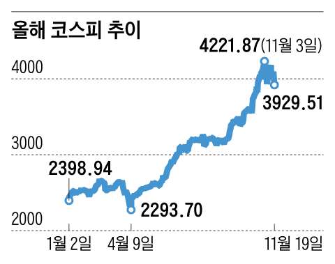 Nevertheless, as people started to enter the market more seriously, concerns about a U.S.-led AI bubble arose, making things more complex. The KOSPI experienced significant fluctuations after exceeding 4,200 and dropped to the 3,920 level by the 19th.