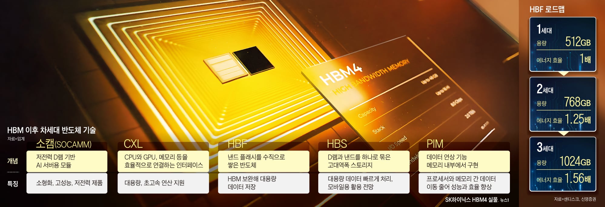 Another initiative aims to substitute HBM, which has seen a significant increase in value during the AI era. This alternative is called HBF (High Bandwidth Flash). Unlike HBM, which is a high-performance chip made by stacking DRAM layers, HBF utilizes NAND flash instead of DRAM.