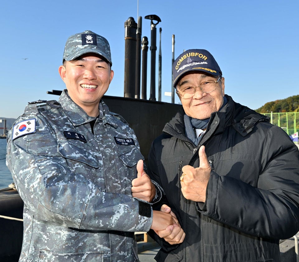 The Jangbogo left Jinhae Naval Base, which serves as the headquarters for the Navy's Submarine Flotilla, in the afternoon and carried out its last journey for approximately two hours. Four individuals who had traveled to Germany to obtain the submarine—such as An Byung-koo, 76 years old, the first commander, along with former defense officers and chief petty officers—came aboard the ship to say goodbye. When the Jangbogo returned to the base, submarines moored at the harbor collectively sounded their horns in celebration. An, the former leader, said to this newspaper, "As the submarine came back to Jinhae Naval Base after its final trip, memories of previous returns from training exercises came clearly back. Seeing the Jangbogo, which successfully finished its 34-year mission, made me feel proud, happy, and thankful, as if it were my own child."