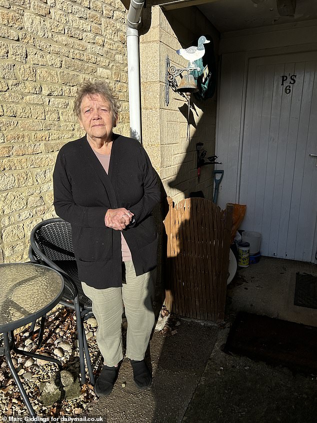 Former textile weaver Pauline Scrivens, 68, carefully cleans her light cream front door and remarked, "I wouldn't have it any other shade."