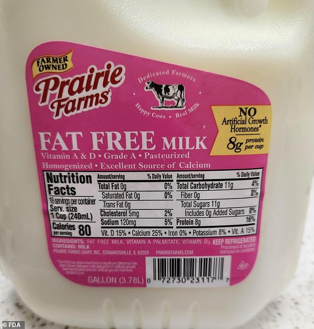 Around 320 gallons of milk were sold in totalIllinois and Wisconsin before the recallwas started on November 25.
