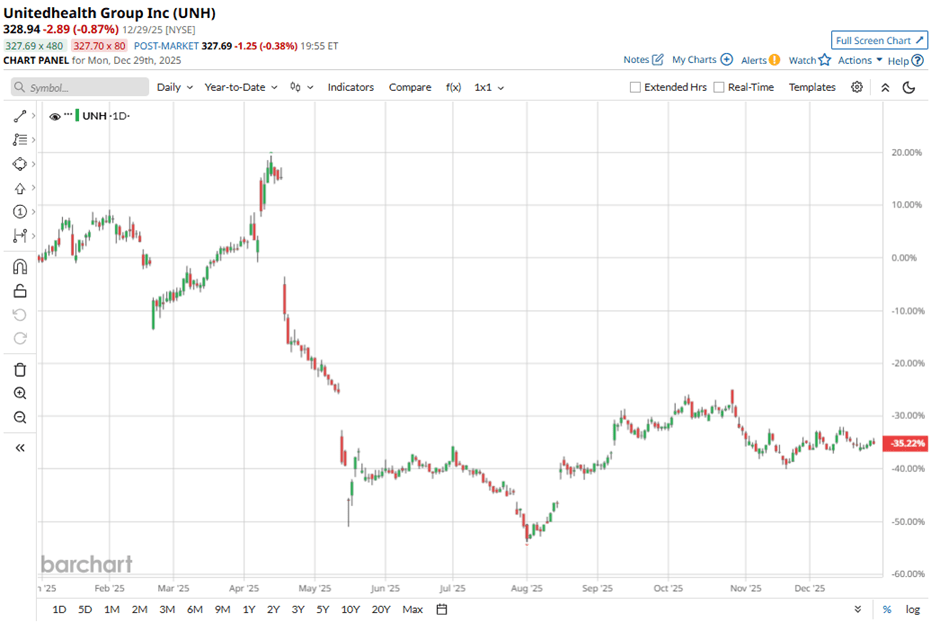 Throughout 2025, UNH stock has experienced a significant negative performance for the year, with the overall return reflecting a decline.decline of around 33%, significantly underperforming the broader S&P 500 Index's (SPX) 17% gainin the last 52 weeks.