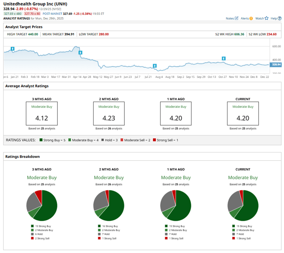 Significantly, UnitedHealth broke a seven-session losing trend with a small recovery on December 24,closing 0.86% up at $327.58, although the overall performance outlook is still weak. The stock is currently trading near the $338 mark.